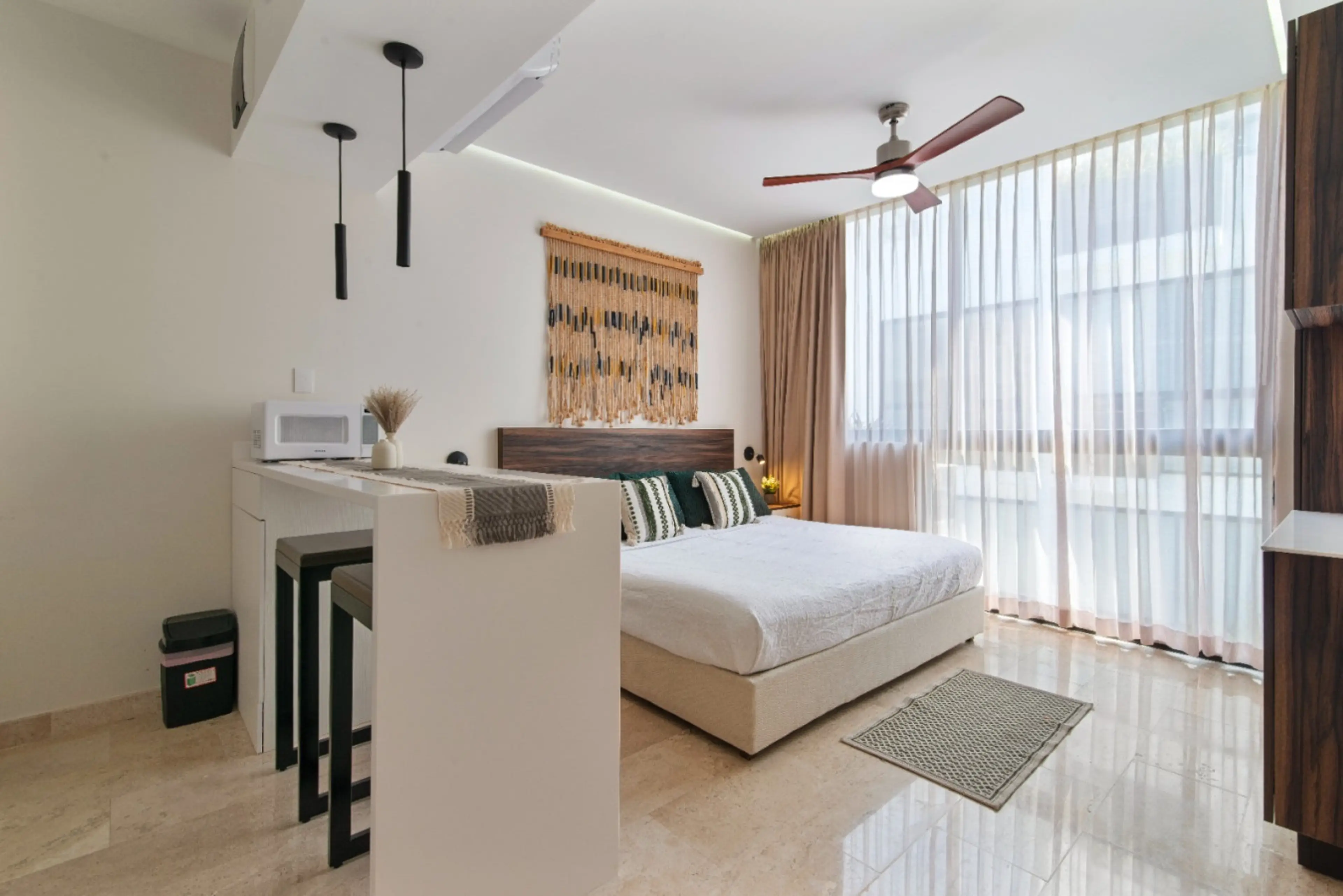 Luxury two bedroom penthouse in Aldea Zama community in the beautiful Tulum. There’s a one bedroom on the top floor with a jacuzzi and the other bedroom is on the second floor with en-suite kitchen. It can sleep a total of four people. Easy access to restaurants, bars, beach, shopping and so many ac...